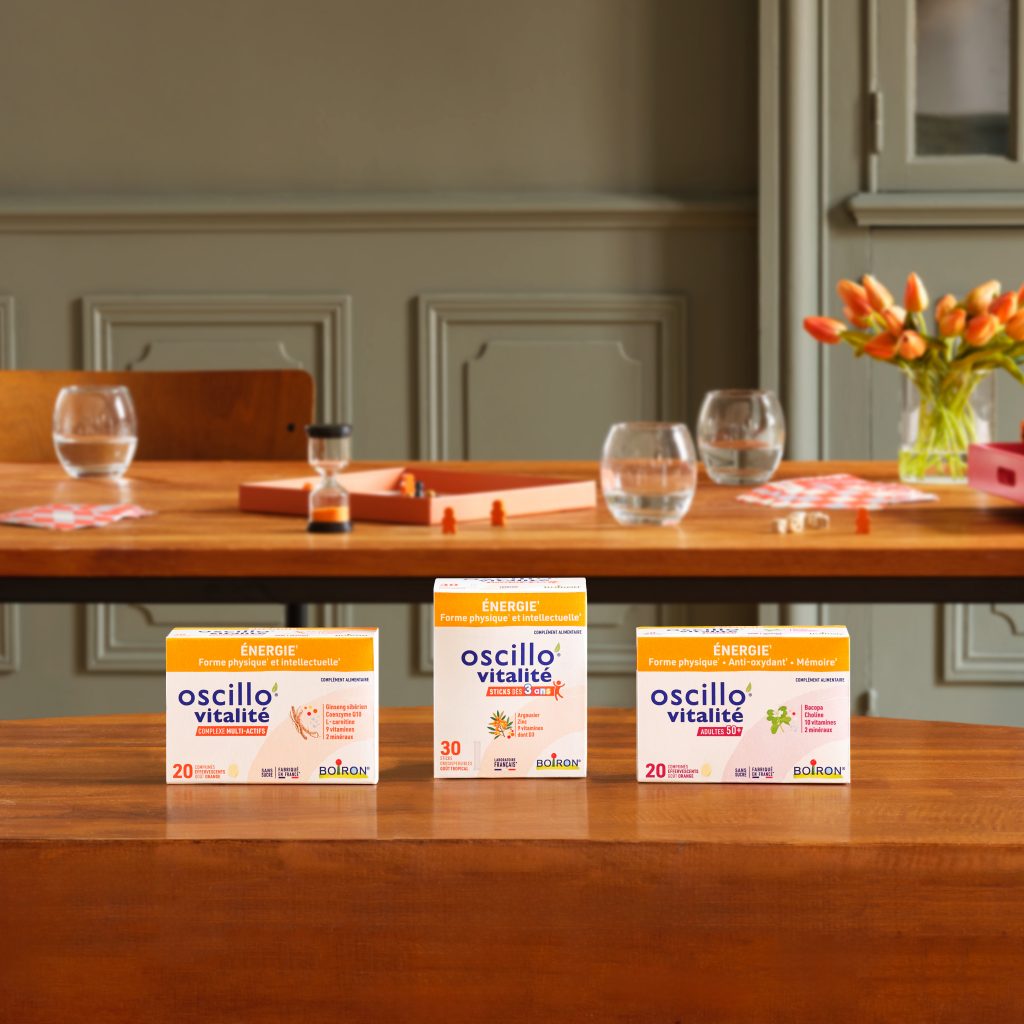 C’est dans cette dynamique que s’inscrit le lancement d’Oscillo’, une gamme qui se veut « Simple, pratique et conçue pour soutenir petits et grands au fil des saisons ».2 Avec Oscillo’, Boiron investit les catégories les plus dynamiques du complément alimentaire, en ciblant deux segments particulièrement porteurs : l’immunité et la vitalité.